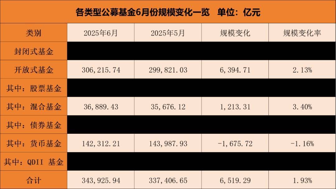 通过对不同类型基金变化数据的统计,记者发现,今年6月公募基金总规模的增长,主要来自权益型基金(包括股票型基金和混合型基金)和债券型基金的增量贡献。