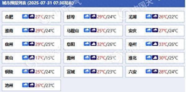 安徽各城市预报。(来源:中国天气网)